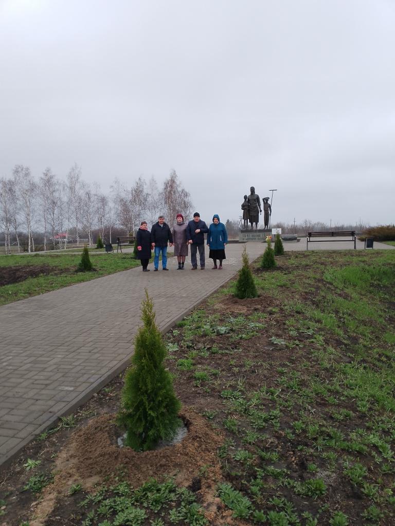 К 80-летию Великой Победы в ВОВ районной организацией ветеранов высажено 80 саженцев туи на территории памятников погибшим воинам.